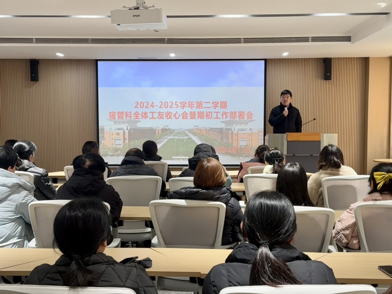 为保障新学期学生宿舍管理工作平稳有序开展,推动宿管科全体同仁迅速进入工作状态,2月15日上午,学务处宿管科组织召开新学期工作部署暨收心会。