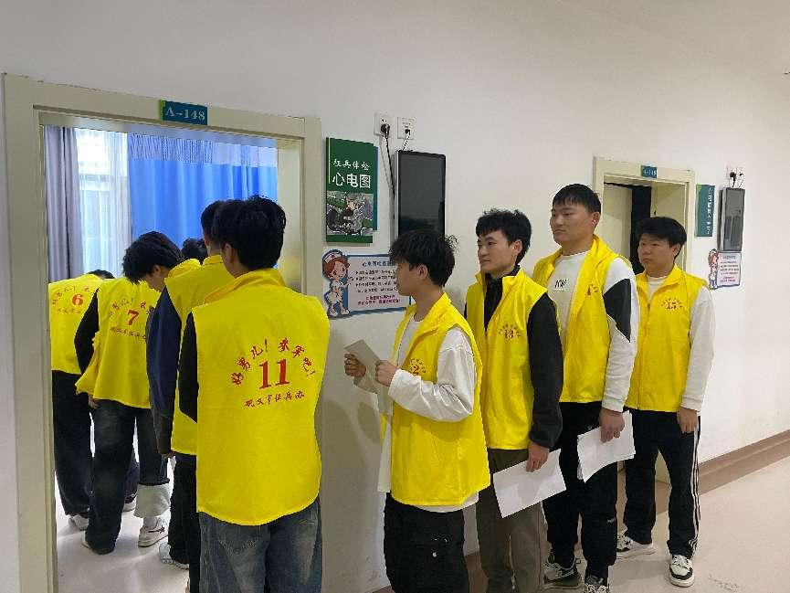 体检现场,应征青年们精神饱满,在工作人员的有序指引下,他们按照名单分组列队,耐心等待体检的开始。随着体检工作的推进,青年们逐一前往各科室接受全面而细致的体检,包括身高、体重、视力、听力、血压等多项检查。整个体检过程井然有序,展现了我校应征青年的良好纪律性和组织性。