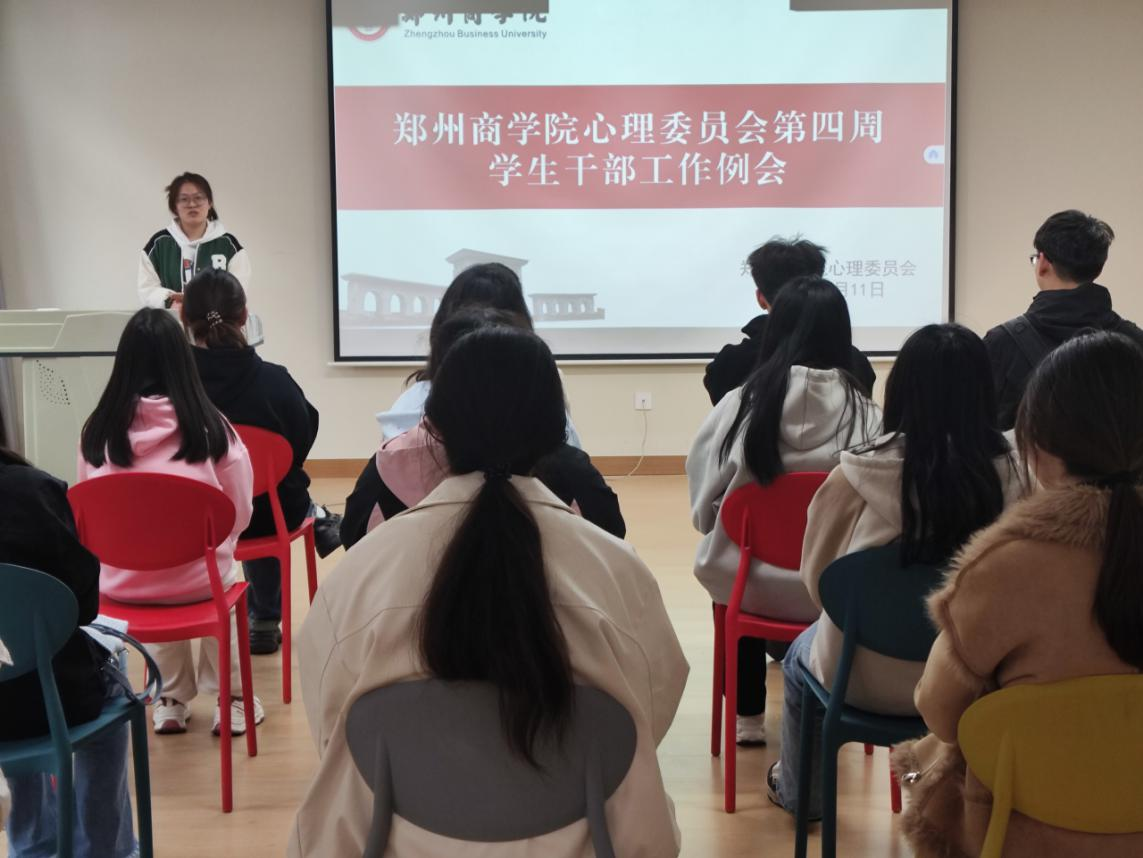 为进一步提升校心委全体学生干部的工作规范,使得学生干部可以全方面的投入到工作中去,增强参与感,全体成员于2025年3月11日下午,在心理健康教育中心开展本次例会。此次培训会由郭婷主持,校心委成员以及全体干部参加。