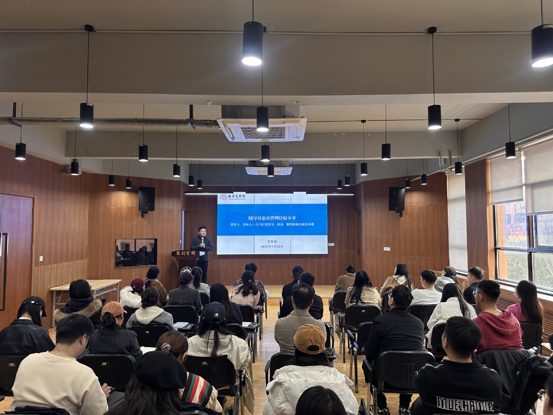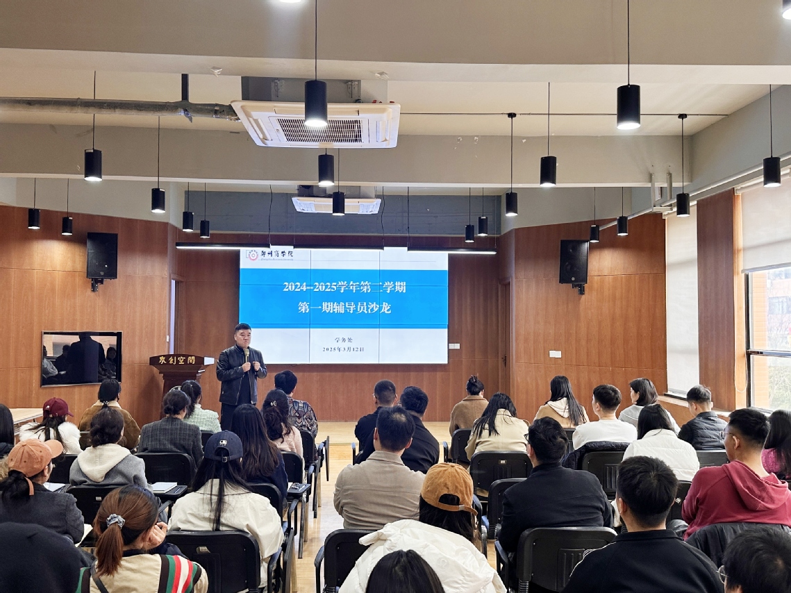 为进一步提升我校辅导员队伍专业素养和工作能力,搭建常态化交流平台,更好地服务学生成长、助力学校发展,3月12日下午,学务处于学生事务服务中心三楼路演厅组织开展了2024-2025学年第二学期第一期辅导员沙龙活动,本次活动由学务处副处长兼生辅科科长贺萌、宿管科科长陈勇彬主讲,各学院新入职辅导员参加。
