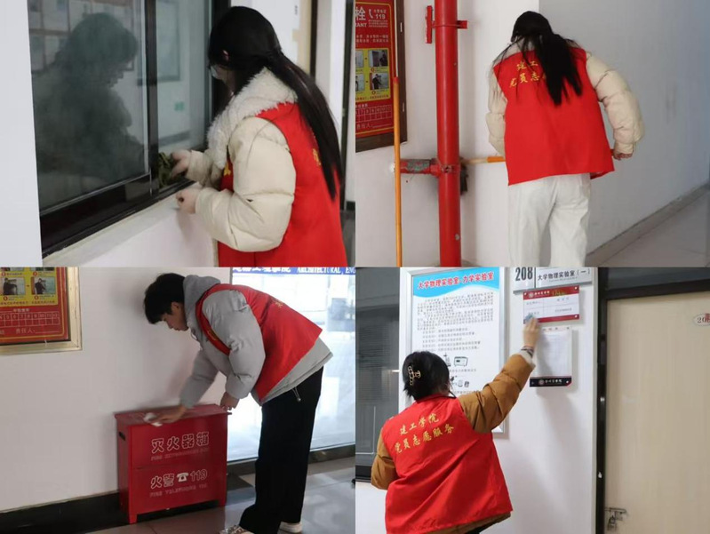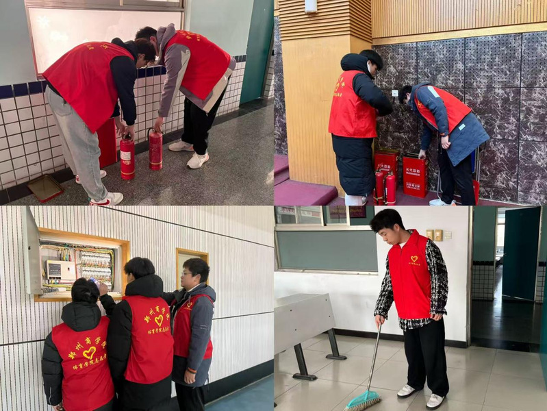 各二级学院积极响应,组织有效,全面排查了教学楼内消防设施,确保灭火器、消防栓等关键设备齐全无损;同时对教室门窗、蜘蛛网等卫生死角进行了彻底打扫,清理教室内杂物;落实“一分钟环保”,引导学生课后带走身边垃圾、整理桌面,培养良好卫生习惯。