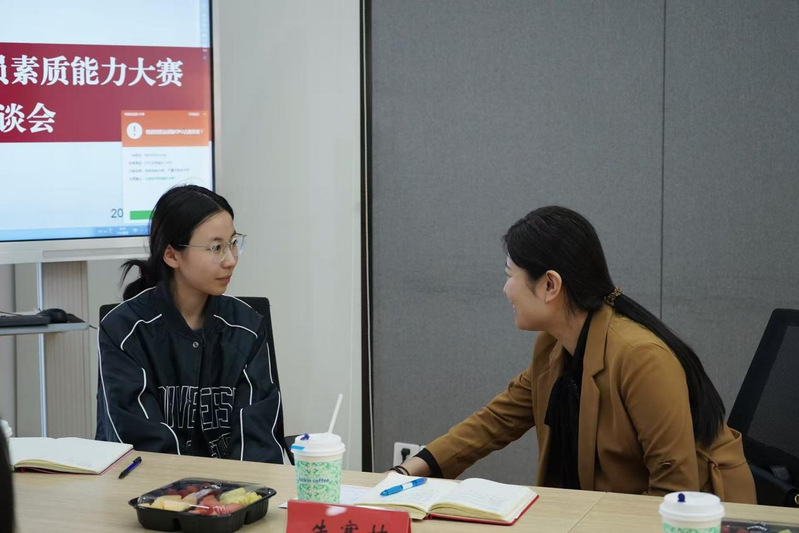 座谈会现场,胡波老师还与我校辅导员进行了模拟谈心谈话演示,通过真实案例展示了如何运用“倾听-共情-引导”的三段式谈话技巧处理学生心理危机事件。她讲到,比赛只是形式,真正的赛场在日常工作中,要把备赛过程转化为提升育人实效的过程。