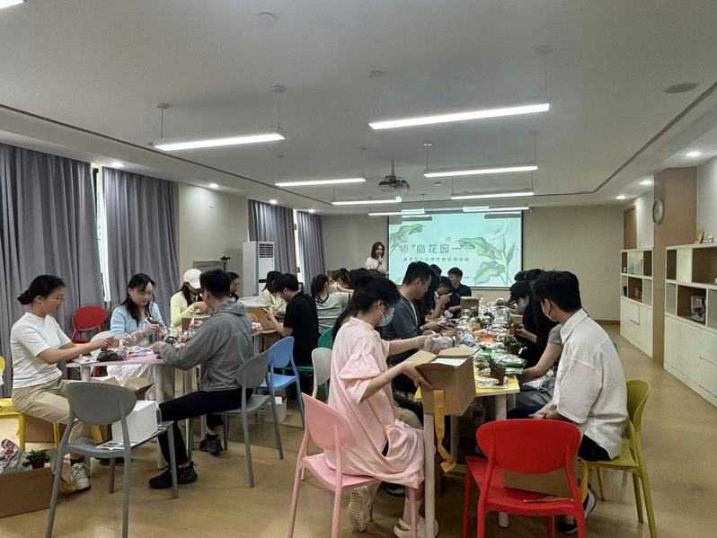 活动在温馨愉悦的氛围中展开,伴随着舒缓的音乐和引导语,李老师带领大家进入正念冥想环节,帮助老师们暂时放下工作的疲惫,进入放松状态。“一花一世界,一叶一菩提。”在理论讲解环节,李老师从心理学角度阐释了微景观创作的疗愈价值,指出方寸之间的生态构建能培养专注力、调节情绪。活动现场准备了丰富多样的植物和装饰材料,老师们化身为“微观造梦师”,用砂石堆叠山峦,以绿植打造花园,创作出各具特色的生态瓶作品。分享环节中,老师们纷纷表示:“专注创作时烦恼自然消散,看着瓶中生命成长,更深刻体会到教育就是要为每个学生营造适合的成长空间。”这一方小小的生态世界,不仅带来心灵的宁静,更启发了育人工作的新思考。