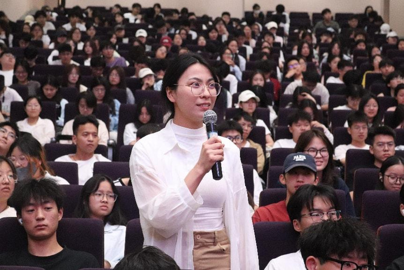 讲座伊始,潘广镇老师介绍了其在行业领域取得的各项项目成就,并结合自身的工作经历,讲述了从一名怀揣希望的普通技术人员一步步成长为行业领军者的奋斗历程,详细分享了从实验室研发到产业报国中在科研攻关中克服重重困难的经验与感悟,谈到在职场面对复杂的技术困难时与团队攻坚克难,始终秉持着对工作的热情不断探索反复研发克服挑战,充分展现了“干一行,爱一行,专一行”的敬业精神。紧接着,潘广镇老师深入地阐释了工匠精神的内涵,强调了“精益求精,追求卓越”的工作态度,让现场的同学们深刻认识到了工匠精神在实际工作上的重要意义。发言结束后,潘广镇老师与同学们进行密切交流互动,同学们踊跃提问,现场氛围热烈,潘广镇老师耐心倾听同学们的问题并结合同学们学习情况,真诚地建议同学们在学习中努力钻研学习做到精益求精,在日常生活中多与老师同学们交流吸取更多的经验,不断进步,将个人理想融入国家发展中,树立正确的劳动观念,在学习生活和未来工作中发扬工匠精神,脚踏实地、勇于创新有所成就。最后,潘广镇老师结合自身感悟,向大家阐述劳模精神与科技创新在当今世界的重要意义,鼓励同学们用平凡铸就伟大,劳动创造辉煌,以实际行动助力强国建设,为民族复兴贡献力量。