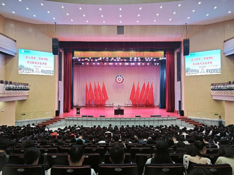 为深入贯彻习近平总书记关于教育的重要论述,弘扬劳模精神,激励青年学子树立正确劳动观。5月14日下午,我校特邀全国劳动模范、巩义市泛锐熠辉复合材料有限公司首席工程师潘广镇博士作“匠心筑梦,劳模领航”劳动教育主题讲座,巩义市总工会党组副书记、副主席赵捷,我校工会副主席李申、学务处处长路程、巩义市总工会党组班子成员、我校各二级学院党团书记、全体辅导员以及1500余名学生代表参加活动,会议由学务处副处长贺萌主持。