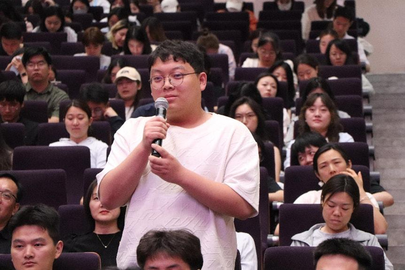 讲座伊始,潘广镇老师介绍了其在行业领域取得的各项项目成就,并结合自身的工作经历,讲述了从一名怀揣希望的普通技术人员一步步成长为行业领军者的奋斗历程,详细分享了从实验室研发到产业报国中在科研攻关中克服重重困难的经验与感悟,谈到在职场面对复杂的技术困难时与团队攻坚克难,始终秉持着对工作的热情不断探索反复研发克服挑战,充分展现了“干一行,爱一行,专一行”的敬业精神。紧接着,潘广镇老师深入地阐释了工匠精神的内涵,强调了“精益求精,追求卓越”的工作态度,让现场的同学们深刻认识到了工匠精神在实际工作上的重要意义。发言结束后,潘广镇老师与同学们进行密切交流互动,同学们踊跃提问,现场氛围热烈,潘广镇老师耐心倾听同学们的问题并结合同学们学习情况,真诚地建议同学们在学习中努力钻研学习做到精益求精,在日常生活中多与老师同学们交流吸取更多的经验,不断进步,将个人理想融入国家发展中,树立正确的劳动观念,在学习生活和未来工作中发扬工匠精神,脚踏实地、勇于创新有所成就。最后,潘广镇老师结合自身感悟,向大家阐述劳模精神与科技创新在当今世界的重要意义,鼓励同学们用平凡铸就伟大,劳动创造辉煌,以实际行动助力强国建设,为民族复兴贡献力量。