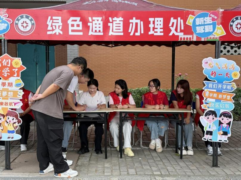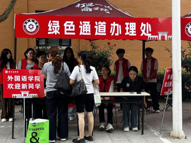 为全力保障2025级家庭经济困难新生顺利入学,9月10日,我校在迎新现场开设“绿色通道”服务台。校学生资助管理中心在行政楼前设立综合服务台,各二级学院在迎新报到处设立学院办理处,各服务台在迎新期间通过解答疑惑、宣传国家和学校资助政策、提供校内生活信息、协助办理报到手续等举措,为新生及家长提供全方位支持。