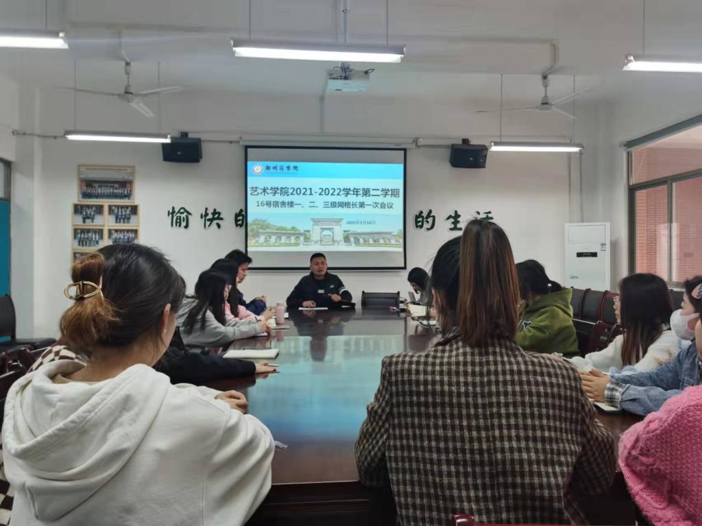 为进一步优化宿舍网格化管理,持续深入贯彻落实“六化一家园建设”,稳步推进宿舍网格化管理工作,3月11日上午,艺术学院在艺术大楼二楼会议室召开2021-2022学年第二学期网格长第一次会议。艺术学院党委周余书记、团委刘健书记和全体辅导员参加会议。
