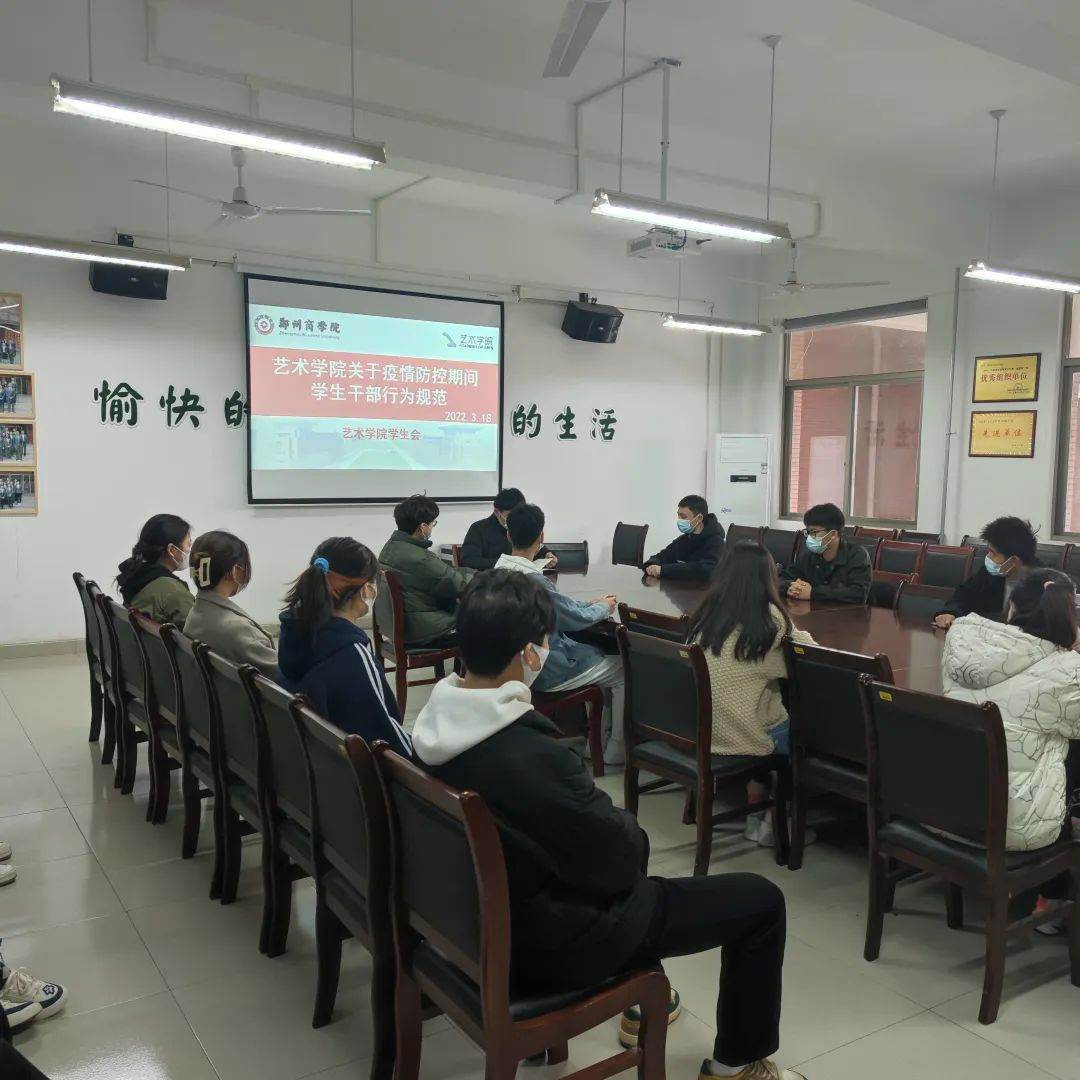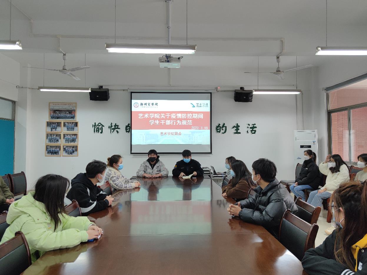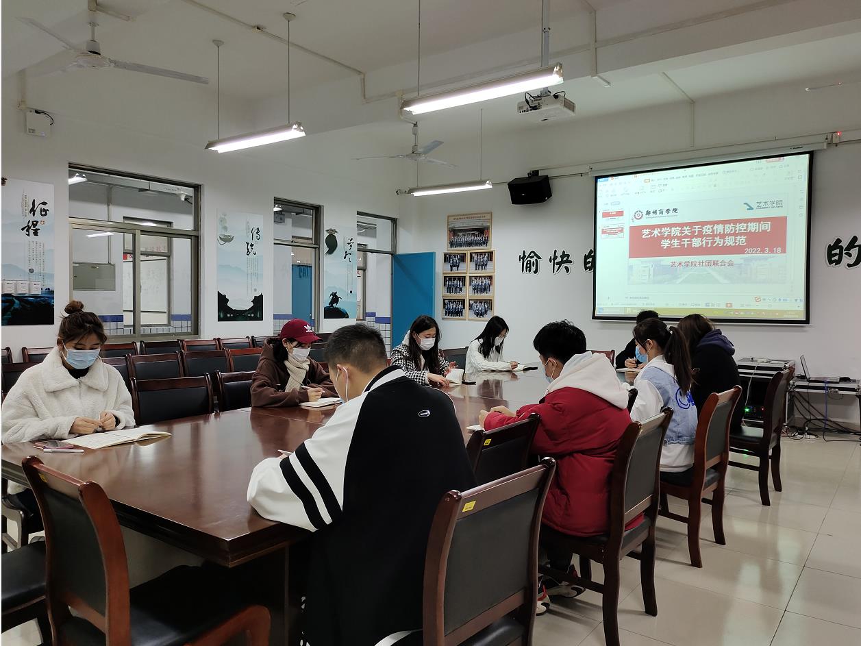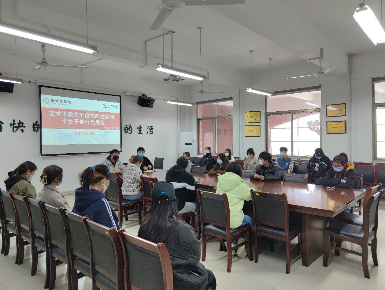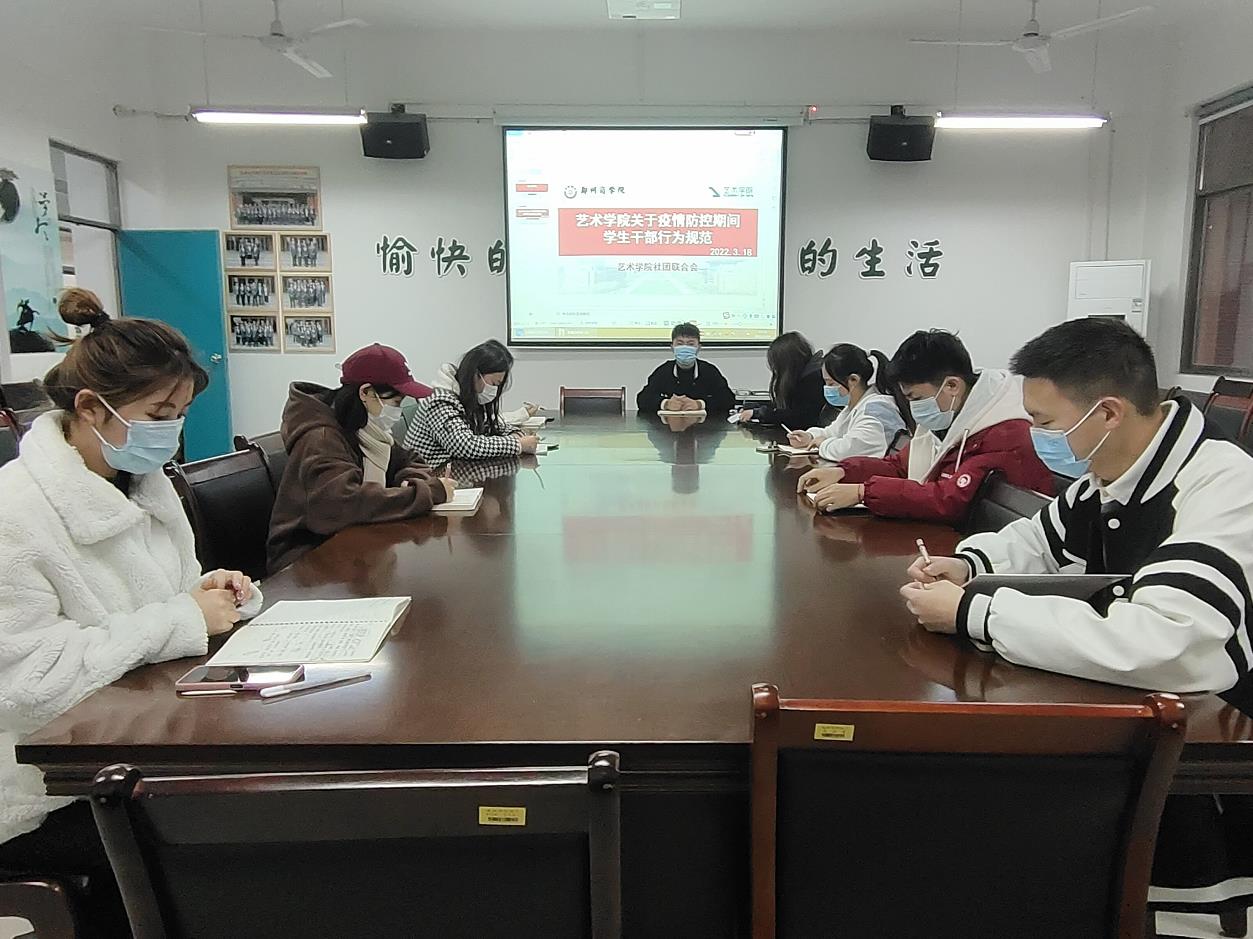 为做好疫情防控工作,艺术学院积极响应学校号召,团委学生会各部门分批次组织学生干部学习我校发布的《关于疫情防控期间学生干部行为规范的通知》内容。