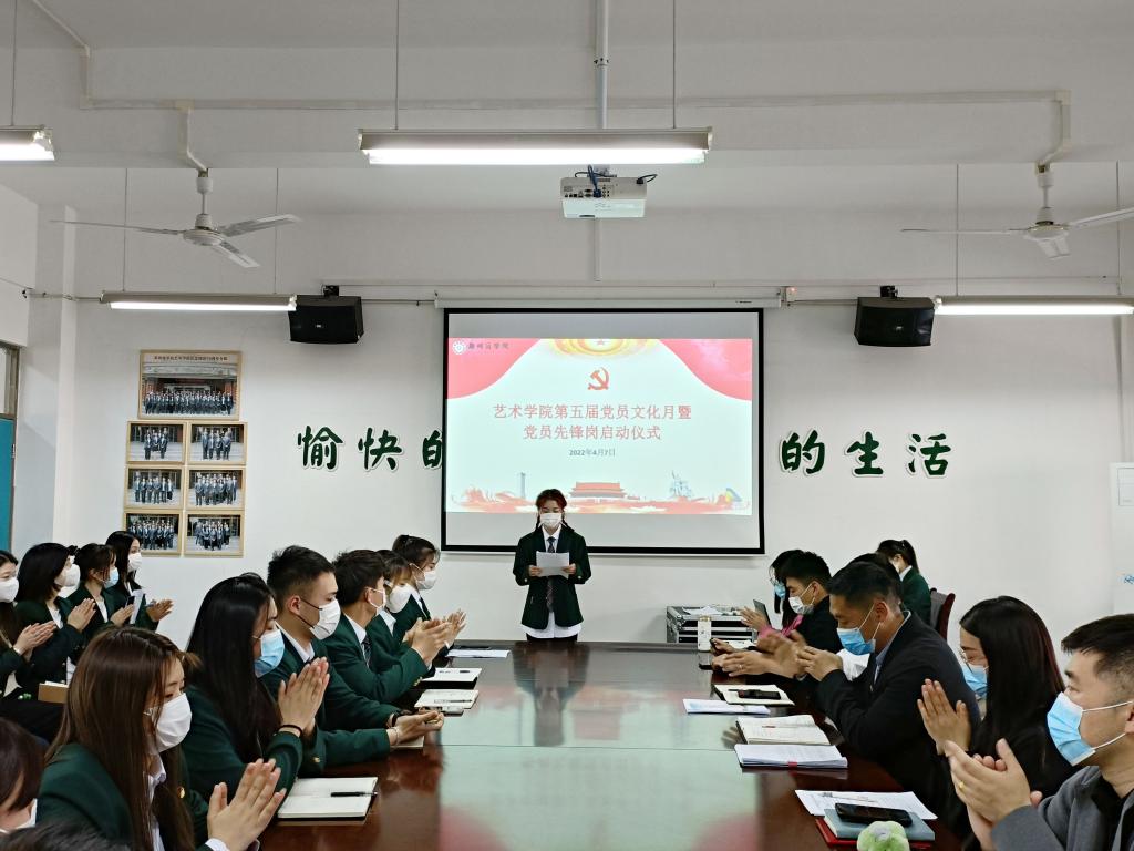 为了进一步增强艺术学院党组织的凝聚力和战斗力,充分发挥先锋岗的引领示范和先进作用,4月7日下午,艺术学院召开第五届党员文化月暨党员先锋岗启动仪式。仪式由艺术学院党委书记周余、各支部书记以及学生党员代表参加。