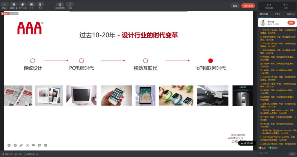 4月14日晚7点,由各教研室主任主讲《产品/动画/视传/环设专业认知》。教研室的老师们围绕专业背景、专业特色和优势以及人才培养模式等方面进行解读,并向同学们展示和分享了一些优秀作品,以加深对专业的了解和认知。
