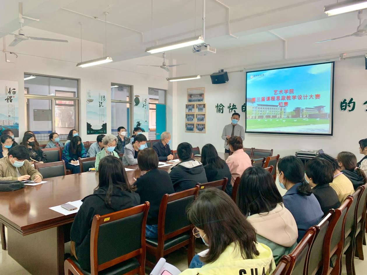 2022年04月14日下午,艺术学院为落实999策略白菜手机论坛思政教学比赛的通知,聚焦立德树人根本任务,营造浓厚的课程思政改 革氛围,提高课程思政育人能力,按照本学期课程思政建设总体安排,在艺术楼会议室举办了艺术学院课程思政教学设计比赛。