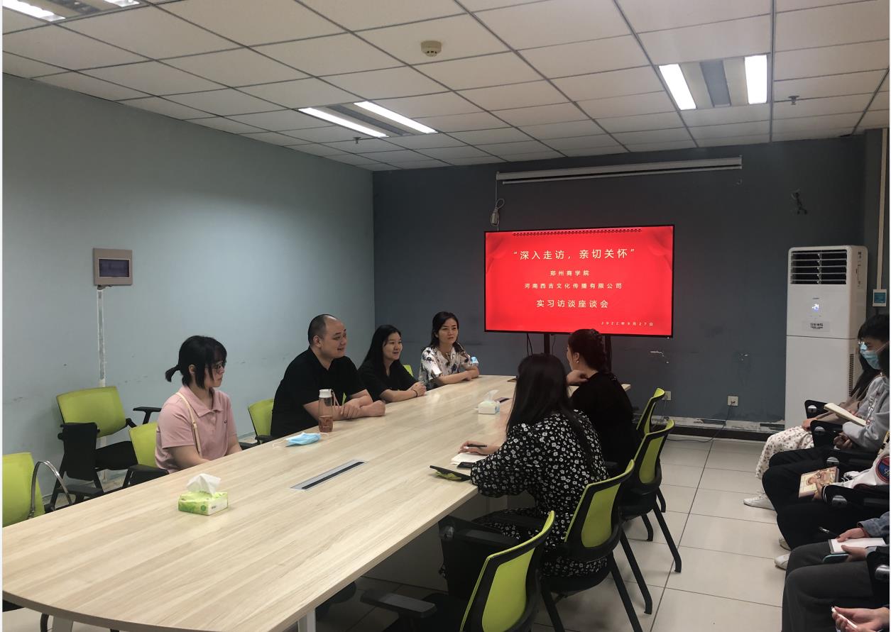 在河南西吉文化传播有限公司,各位老师与学生面对面进行了一场座谈会,对学生在实习培训期间的学习安排以及学生的日常生活进行了深入的了解,老师们听取他们对主要工作内容、面临的困难及实习体会的报告,并进行了针对性的指导,就同学们提出的一些疑问,也给予了细致的指导,并就部分同学的诉求与企业负责人进行了反馈和交流。同学们均表示,实习使自己的专业能力得到了提升,收获很大。此外,通过与企业负责人的沟通,结合动画的专业设置,为艺术学院提供了一些新的培养思路,同时也为促进大学生就业奠定了基础,更是对实现国务院《“十四五”就业促进规划》的一次践行。