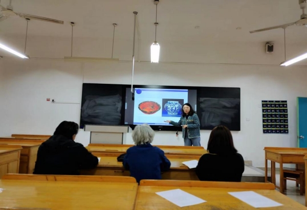 在公开课上,王瑶老师担任我校特色课程《河洛文化艺术》的主讲教师,主要讲授第四章巩义古代雕塑艺术第二节陵墓寺庙,主要内容为了解宋陵的来龙去脉、石窟寺和慈云寺的历史与成就,让学生感受巩义建筑雕塑艺术的魅力,使学生体验到河洛文化的厚重感;肖凯伦老师主要讲授了第三章巩义陶瓷艺术,使学生了解巩义陶瓷的历史及成果,懂得白瓷与唐三彩的制作步骤,能清晰分辨陶与瓷的区别;李小亚老师主要讲授成角透视,引导学生分析成角透视的形成原理,总结成角透视的规律与作图特点。