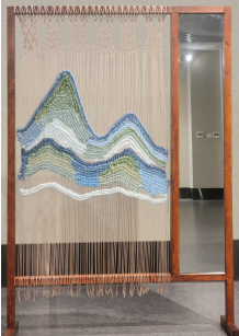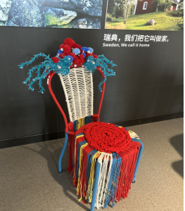 本次作品灵感来自于河南豫剧穆桂英挂帅,选取了其服饰的经典色调。红蓝为主色调,黄色白色加以点缀,采用编织手法,对拉科椅进行颜色和造型方面的改造,将传统文化与现代设计相结合,装饰味道浓厚。