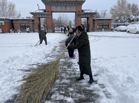 此次清雪活动,确保了校园道路的畅通,展现了我院全体教职工甘于奉献、勇于担当的良好风貌,大家在劳动中感悟着乐趣和团结的力量,增强了老师们之间的凝聚力,为全校师生的安全出行提供了保障。