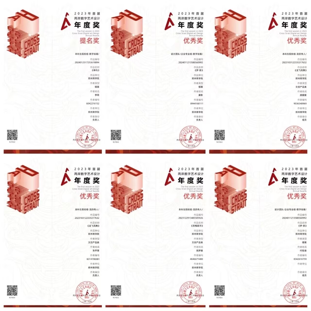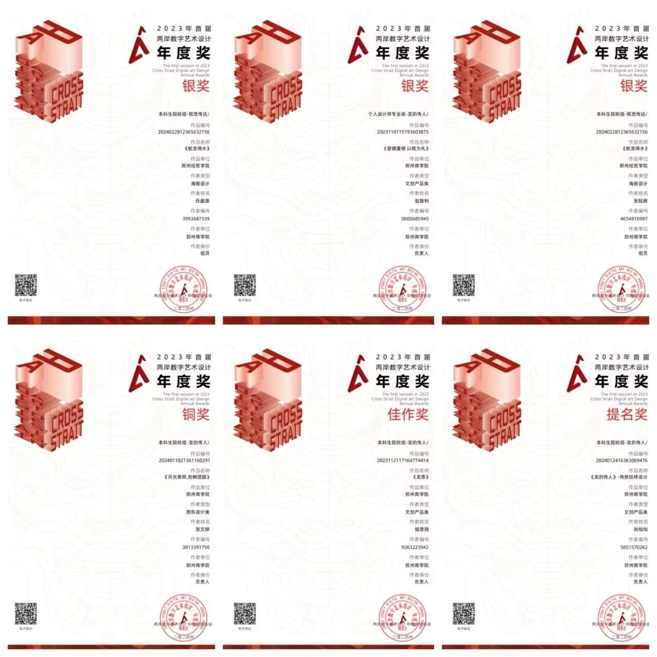 近日,由海峡两岸交流促进会、台湾旅游和文化协会等协办的2023首届两岸数字艺术设计·年度奖获奖结果公布。我院师生斩获银奖2项,铜奖1项,佳作奖1项,提名奖2项,优秀奖4项的优秀成绩。