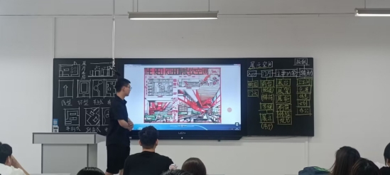 在授课环节,教师们课前准备充分,课件制作精美,大量的案例分析吸引学生的注意力,并引导学生将这些案例运用到自己的创作中。教师们讲课状态热情饱满,板书工整且图文并茂,层次清晰,重难点突出。学生听课认真,发言互动积极。