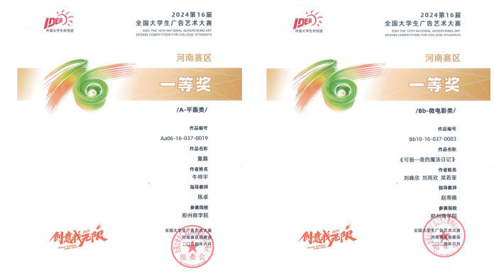 近日,第16届全国大学生广告艺术大赛全国等级奖获奖名单正式公布,我校艺术学子再创佳绩。