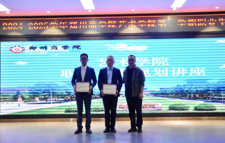 随后,李书记为两位嘉宾颁发了“艺术学院就业指导讲师”荣誉证书,不仅是对两位嘉宾在各自领域内卓越成就的高度认可,更是对他们长期以来对教育事业关心与支持的诚挚感谢。标志着学院在深化校企合作、拓宽学生就业视野方面迈出了坚实的一步。