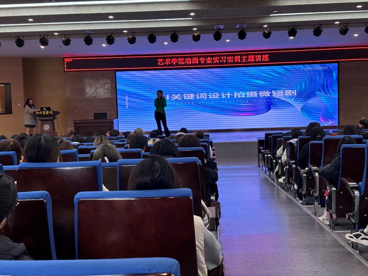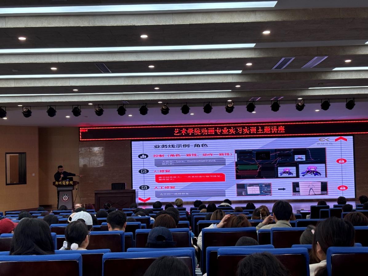 为了进一步深化校企合作,落实学校人才培养方案,促进学生高质量就业,2024年11月17日,艺术学院动画专业携手奇想文化传播有限公司与郑州读书阁数字科技有限公司,在自力楼报告厅共同举办了一场别开生面的实习实训讲座。
