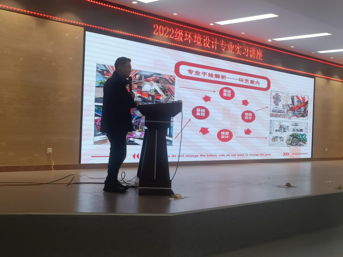 为了拓宽学生的视野、提高专业认知、明确就业方向,2024年12月13日晚19:00-20:30在自力楼三楼报告厅,环境设计专业邀请俄罗斯国立工艺美术大学设计博士、河南风暴教育科技有限公司总经理、深圳朗泽装饰集团创意设计总监路伟杰老师到校为环境设计专业学生开展关于俄罗斯建筑设计发展现状及考研就业相关的讲座。路博士不仅在考研就业方面有丰富的教学经验,也参与了很多实际的设计项目,实践经验和教学经验比较丰富。本次讲座有环境设计专业教研室主任马前进主持,22环设1-11班和24环设专升本1-2班共429名学生和教研室教师参加,共同探讨俄罗斯建筑设计的最新动态以及环境设计专业考研就业前景。