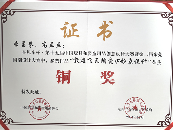 近日,2024年风车杯·第十五届中国玩具和婴童用品创意设计大赛暨第二届东莞国潮设计大赛获奖名单正式揭晓。我院产品设计专业李勇攀、高兰兰同学的作品“敦煌飞天陶瓷IP形象设计”获得国赛铜奖,赵一帆同学的作品“杜甫故里主题文创游戏棋”获得鼓励奖,我院获得“优秀组织院校奖”。