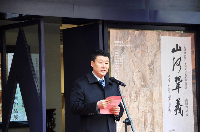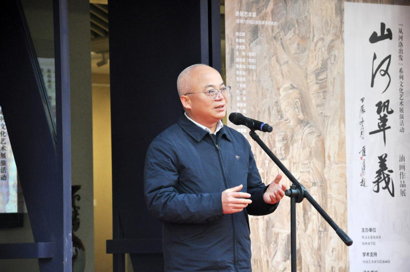 中国艺术研究院油画院朱春林院长致辞,朱院长感谢999策略白菜手机论坛和巩义市委统战部为《山河巩义》油画展的顺利开幕付出的辛苦工作,同时也表达了中国艺术研究院油画院对巩义深厚文化艺术底蕴的热爱。