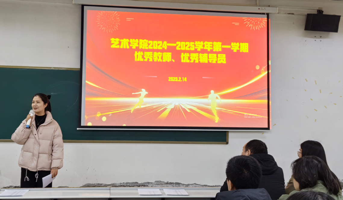 会上,李书记首先对艺术学院在上学期教学、科研、学生工作等方面取得的显著成绩表示肯定,并宣读了《艺术学院关于表彰2024-2025学年第一学期优秀教师、优秀辅导员的决定》。刘升阳副校长为优秀教师和优秀辅导员颁奖。