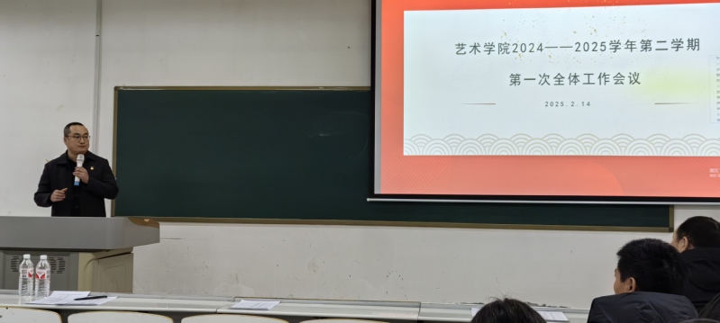 为全面总结上学期工作成效与经验,部署新学期工作目标与重点任务,推动各项工作有序开展,艺术学院于2月14日下午,召开了2024-2025学年第二学期第一次全体工作会议。我校副校长刘升阳、艺术学院院长牛琳琳、艺术学院党委书记李帅,以及学院全体教职工参加了会议。会议由李帅书记主持。