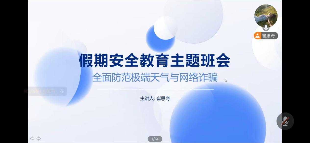 此次假期安全教育主题班会进一步增强了同学们的安全防护意识,帮助同学们掌握了安全防护措施和技能。希望同学们将安全牢记心间,度过一个平安、充实、愉快的寒假!