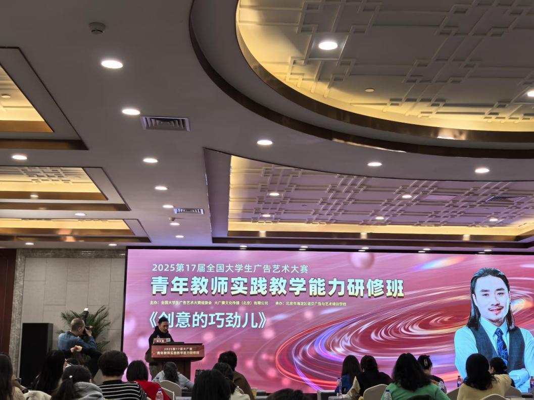 为深入贯彻国家关于加强高校青年教师实践教学能力培养的战略部署,进一步拓展青年教师对艺术课程设计与实践的视野,让学科竞赛全面深入第一课堂。我院视觉传达设计教研室青年教师张圆圆、任雪会于2025年3月28日——3月30日赴北京参加了为期3天的第17届全国大学生广告艺术大赛青年教师实践教学能力研修班。
