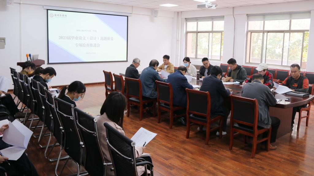 为切实提高我校毕业论文(设计)选题的规范与质量,以进一步完善本科毕业论文(设计)质量保障体系为抓手,严把毕业出口关,我中心于10月24日下午在4号楼202会议室召开了2023届毕业论文(设计)选题质量检查工作推进会。质评中心全体成员、各学院质监员老师参会,会议由我中心王玉东老师主持。