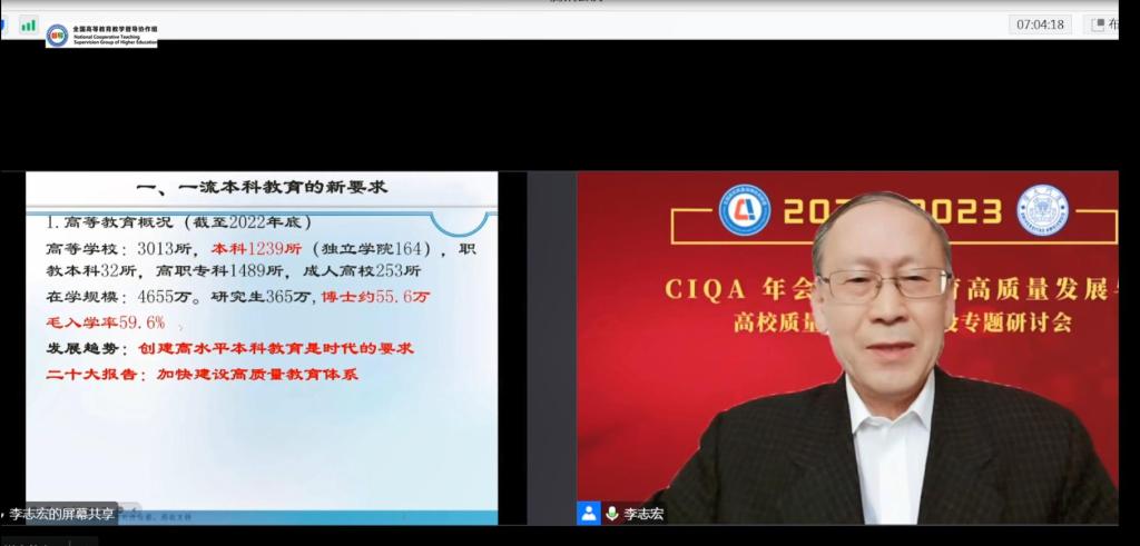 4月14日主论坛,教育部教育督导局副局长、教育部教育质量监控与评估中心处长、CIQA理事长厦门大学原副校长、厦门大学教育研究院院长、厦门大学教育研究院党委书记等11位专家分别以《以高水平督导评估推动各类高校高质量发展》《数据赋能提升本科教育教学质量常态监测工作成效》《高等教育质量文化及其建设路径》《高质量发展与高校分类体系新构想》等为题做了高质量报告,突出了新一轮审核评估的考察特点与高等教育发展方向。