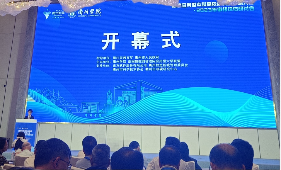本次大会由浙江省教育厅、衢州市人民政府指导,由衢州学院和浙闽赣皖四省边际应用型大学联盟联合举办,会议主题为“以本科教育教学审核评估为抓手,全面提高新时代立德树人成效”,中国工程院院士、浙江大学教授岑可法、教育部教育质量评估中心主任范唯、浙江省人民政府副秘书长蒋珍贵、衢州市人民政府副市长李宁、江苏理工学院原党委书记朱林生、正方软件股份有限公司董事长兼中国高等教育学会常务理事叶青松,以及来自全国的近100所高校、400多位学者、专家出席会议。