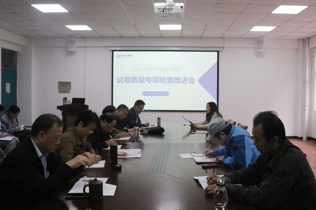 试卷质量专项检查是我校教学质量监控的重要一环,旨在进一步规范试卷档案,强化教学过程管理与监督,不断提高我校试卷质量。2023年10月7日下午,质评中心在4号楼202会议室组织召开2023-2024学年第一学期试卷质量专项检查工作推进会,对本次检查做统筹部署与安排。质评中心校级督导组成员、二级学院质监员参加会议,会议由我中心王曼羽老师主持。