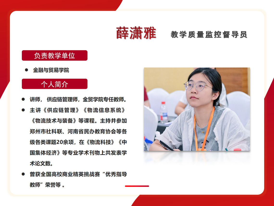 教学质量监控督导员 金融与贸易学院 薛潇雅