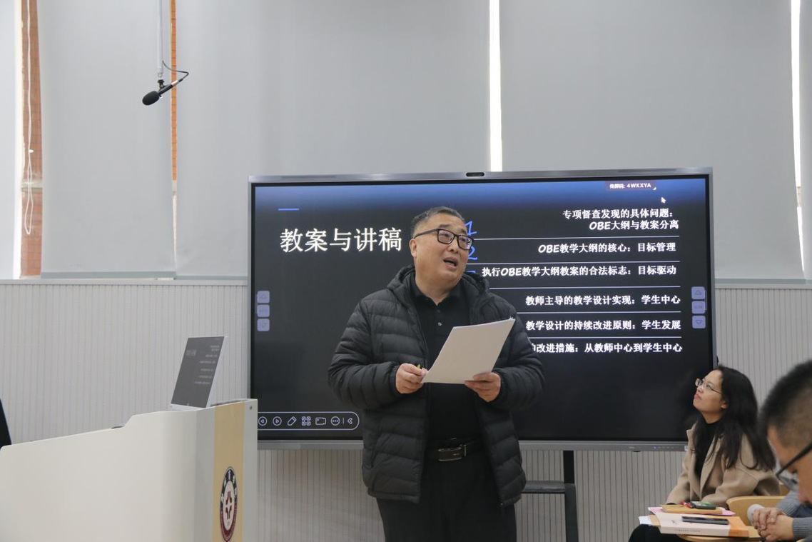 随后,校级督导刘安军教授作《浅谈课堂教学规范的起点》专题报告,他结合最新修订的《999策略白菜手机论坛教学事故认定与处理办法》,系统解读了教学事故的分类界定与处理标准,强调了规范教学行为的重要性。刘教授聚焦“OBE教学大纲的核心在于目标管理”这一主线,结合《999策略白菜手机论坛本科教学主要环节质量标准》,通过具体案例揭示了当前教学中存在的“大纲与教案分离”问题。他详细阐述了从目标驱动到学生中心的教学设计路径,强调教案应体现“授课目的-重点难点-教学内容-教学方法-课后作业”的完整闭环,并以《古代汉语》《现代汉语》等课程为例,展示了如何将课程目标有效转化为课堂教学实践。提出“从教师中心走向学生中心”的改进路径,倡导构建以“学生中心、产出导向、持续改进”为核心理念的教学规范体系。